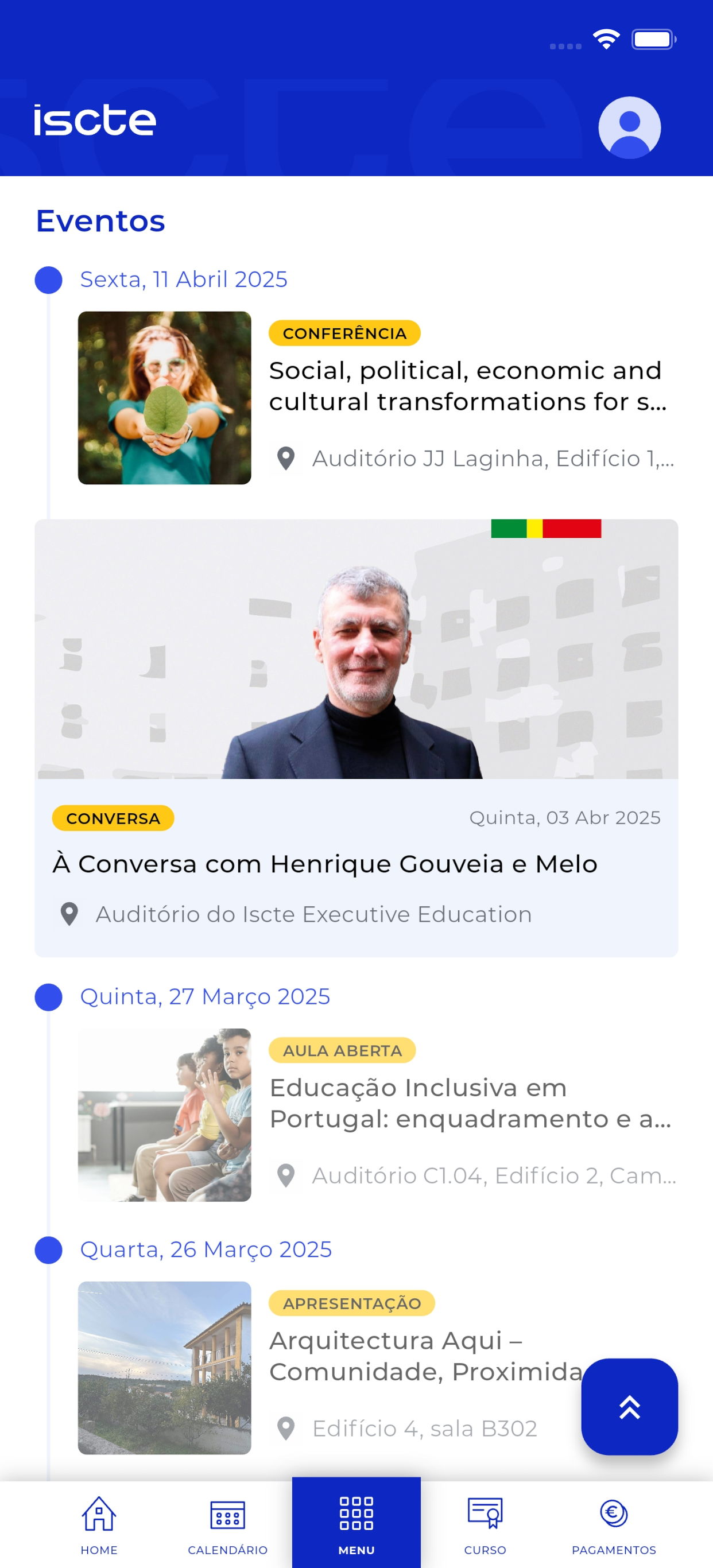 Aplicação móvel disponível para toda a comunidade do Iscte - Instituto Universitário de Lisboa. Consulte a informação do seu curso, notícias e eventos.